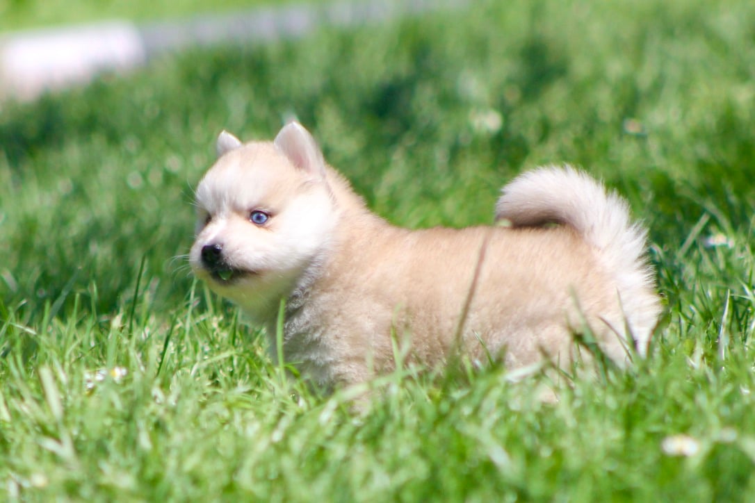 Les Pomsky sont ces chiots peu communs issus du Husky de Sibérie et du Loulou de Poméranie, ces chiots sont encore rares en France.