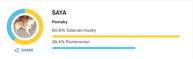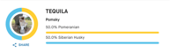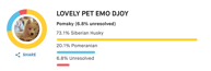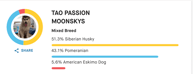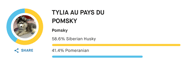 Tous nos parents sont testés Embark, toutes les pathologies potentielles sont balayées et écartés, ci-dessous que qu'on appelle "Genetic Ancestry Result" à savoir la "composition" des Pomsky. Il faut savoir que le Club de Race accepte jusqu'à 20% de "non résolu" et 15% quand c'est du "résolu" Malamute.