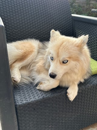 Sky est une crème de Pomsky, joueur et d'une grande gentillesse. C'est un amoureux de l'Amour et même après la période des chaleurs il reste à câliner sa partenaire...